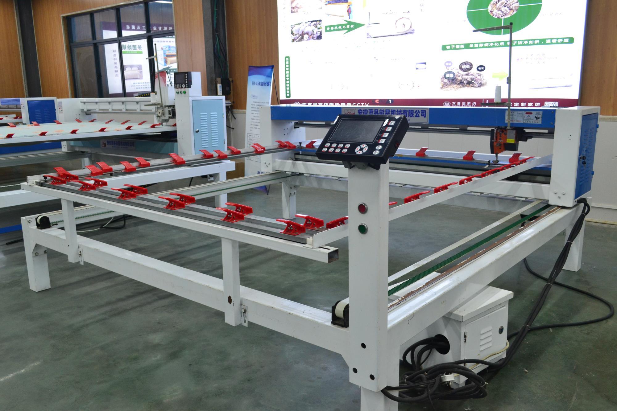 配備新一代絎縫機專用電腦,內(nèi)部實時檢測,確保不拉壞被子;LED高亮度工作燈,夜間作業(yè)穿線更加安全方便;